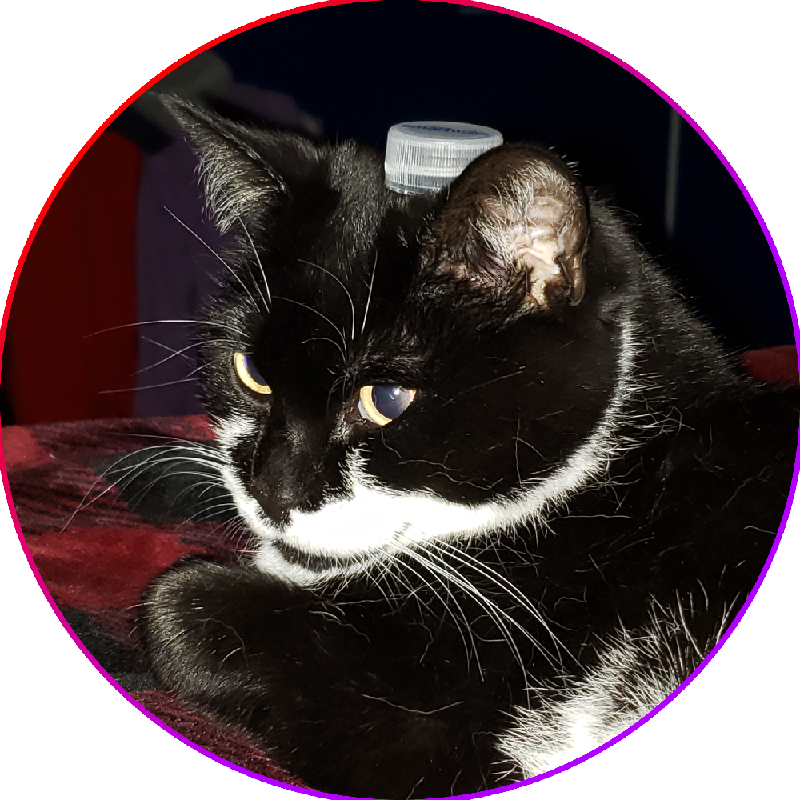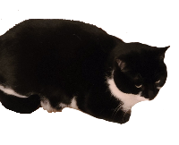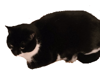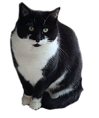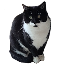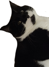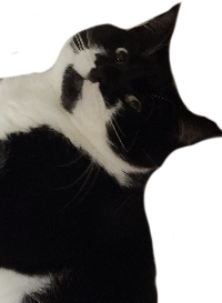 This is my girlfriend's Cat: Luna. She is a black and white moustache cat. She is notoriously smug and mischevious, always causing trouble to those around her. She will always try to steal any food you are (trying) to eat at any given moment. She is not to be trusted. She is a thief. She also is homophobic, as seen when my girlfriend and I hugged, the cat gagged at the sight.